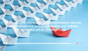 Dabei sind immer wieder Menschen und Berichte aus Organisationen, die mit unserem Modell der Kollegialen Führung auch praktisch erfahren sind. Beispielsweise Dr. Christian Geyer, fachliche Vorstand des Sozialunternehmens Bathildisheim in der 46. Folge.
